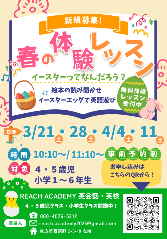 【枚方市・西禁野】小学生からはじめる英会話+児童英検! 中学生まで一貫指導のREACH ACADEMY 英会話・英検・児童英検・英語対策・TOEIC